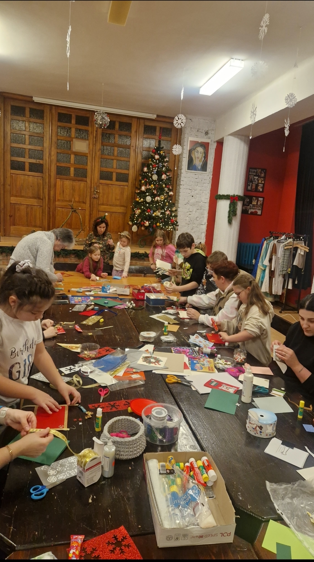 W dniu 12.12.2025 r. we współpracy z Towarzystwem Przyjaciół Dzieci w Mielcu w Świetlicy „Nasze Sprawy” miała miejsce realizacja projektu socjalnego pt. „Rodzinny Zakątek Świątecznej Kartki”.