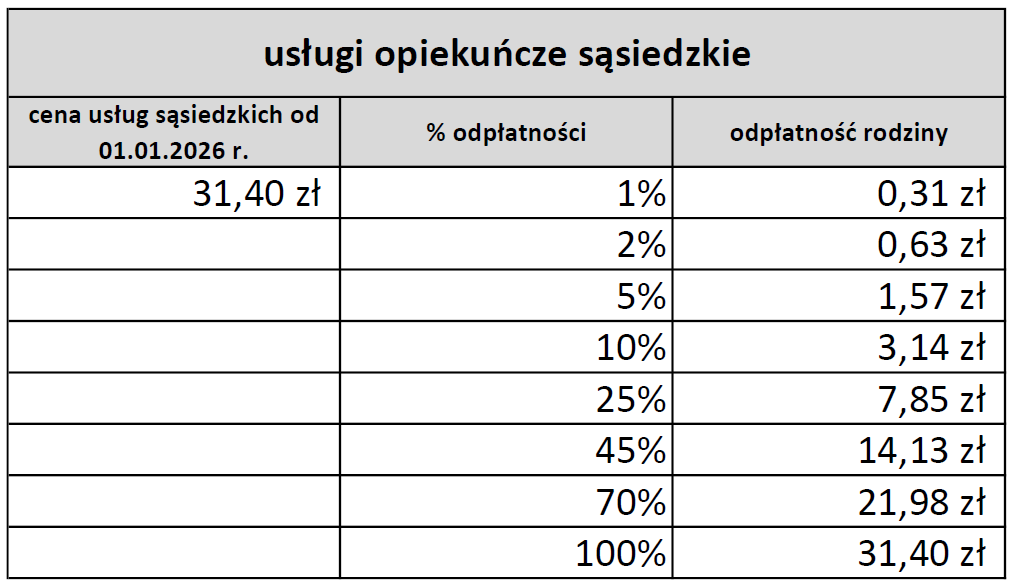 Cena usług opiekuńczych sąsiedzkich:
